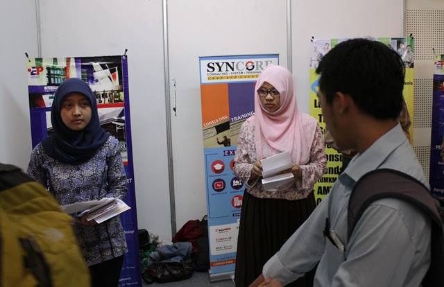 Ratusan pemuda & pemudi yang ingin membuktikan profesionalitasnya didunia kerja mengunjungi stand-stand perusahaan / lembaga yang tengah membuka kesempatan bagi mereka. Tidak terkecuali PT Syncore Indonesia.