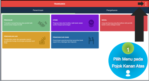 Transaksi-transaksi yang ada sudah dikelompokkan untuk anda. Apakah transaksi pemasukan atau pengeluaran? Untuk Setting anda bisa tekan tombol tiga titik yang ada di kanan atas.
